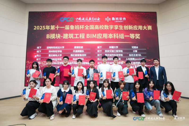 6月7-8日,由中国建设教育协会主办的2025年“鲁班杯”全国高校数字孪生创新应用大赛总决赛在同济大学沪北校区圆满落幕,本次大赛分为11个赛项,共有来自全国215所高校、1008支团队/个人报名参赛,覆盖师生近6000人。经过晋级赛评审专家评审后,最终有365支队伍脱颖而出,晋级全国总决赛。必赢土木与铁道工程学院两支参赛队伍凭借扎实的专业知识、创新的思维和出色的团队协作,由曹宁老师指导的“大寒”队伍在B模块-建设工程BIM应用中荣获大赛一等奖,由李涛老师指导的“什么都队”队伍在A-室内工程设计中荣获二等奖,2位指导教师获得“优秀指导教师奖”。