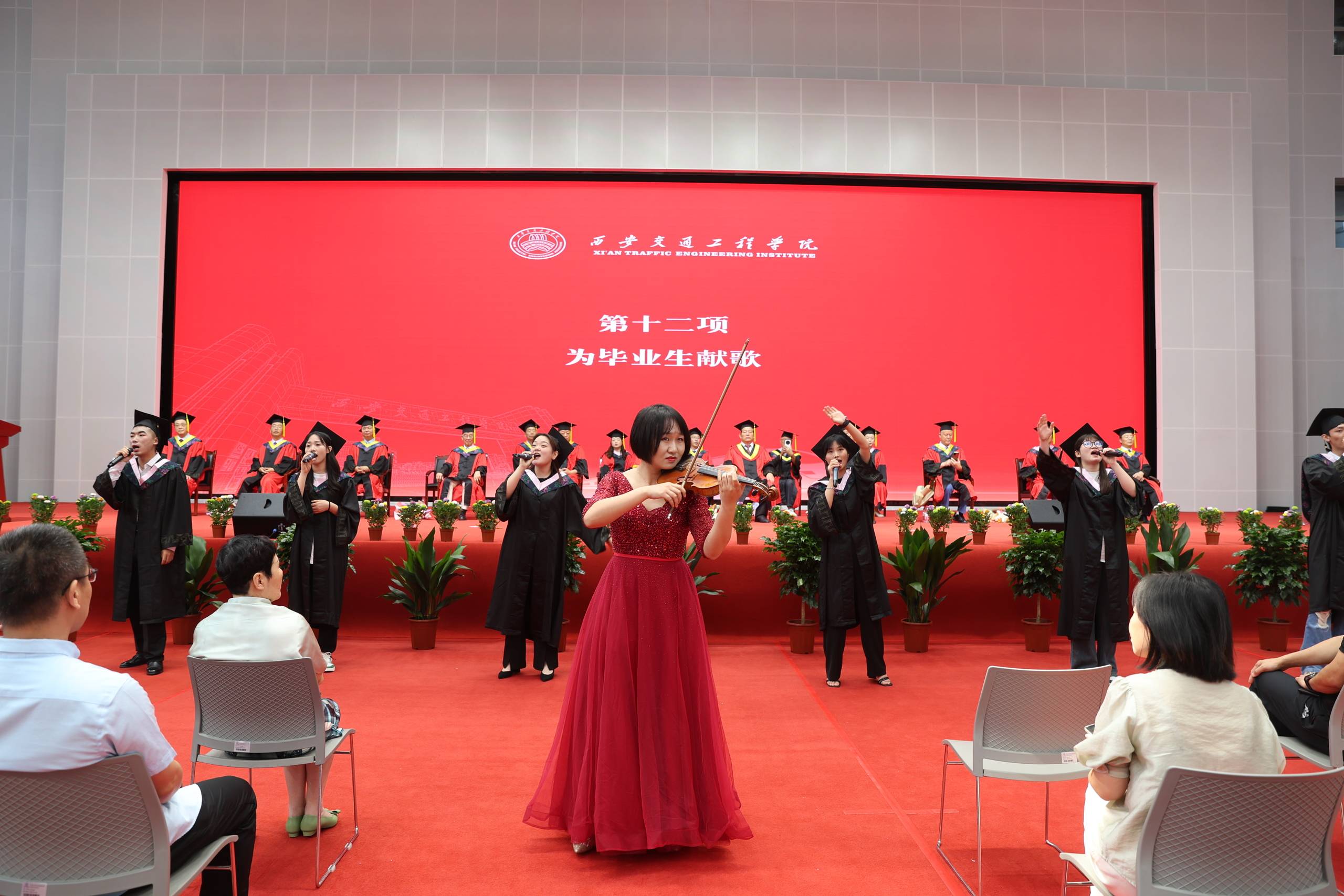 典礼上,毕业生代表怀着感恩之情手捧鲜花走上主席台,为学位评定委员会全体成员献花并深情拥抱;接着为毕业生们现场献歌,演唱歌曲《少年》、《飞云之下》;现场全体毕业生集体宣誓,立下铮铮誓言,传承西必赢大学精神,要用智慧和才华肩负起民族复兴的使命,用青春和热血承担起国家富强的责任。