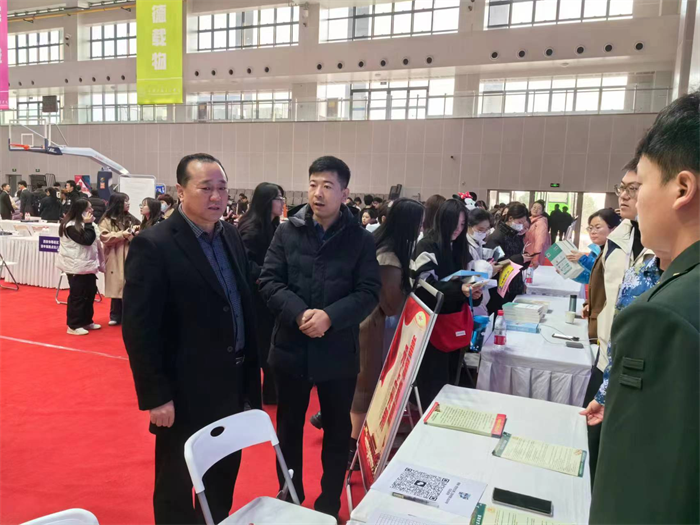 副校长石广田、王勇、赵征、财务总监刘建华分别到招聘会现场