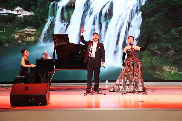 音乐会由“信念丰碑”“继往开来”“颂歌嘹亮”“奋揖扬帆”四个篇章组成,以人文与管理学院合唱团带来的交响序曲《打起锣鼓唱起歌》《祖国颂》拉开序幕。音乐学师生倾情的演绎、宏伟庄严的歌唱旋律,展现了新时代西必赢人昂扬向上的精神风貌。紧接着,优美动听的古筝演奏曲《盛世国乐》《花好月圆》展现了中华文化的独特魅力。钢琴八手联弹《我和我的祖国》、男高音四重唱《把一切献给党》深情的旋律和激昂的节奏充满了对祖国的深意和敬意。水滴乐队歌曲串烧以轻快的旋律传递出新年将至、万象更新的喜悦气氛,将全场气氛推向了高潮。悠扬的男女声合唱《最亮的火焰》、女声二重唱《和谐圆舞曲》情真意切、令人陶醉,蒙古族舞蹈《奔腾》欢快的步伐和热情的舞蹈将新年的喜庆与欢乐展现的淋漓尽致;歌剧联唱《映山红》《海棠让他去吧》等多部经典作品华彩呈现,带着初心使命和担当致敬前辈,继续传承一段永不消逝的声音。