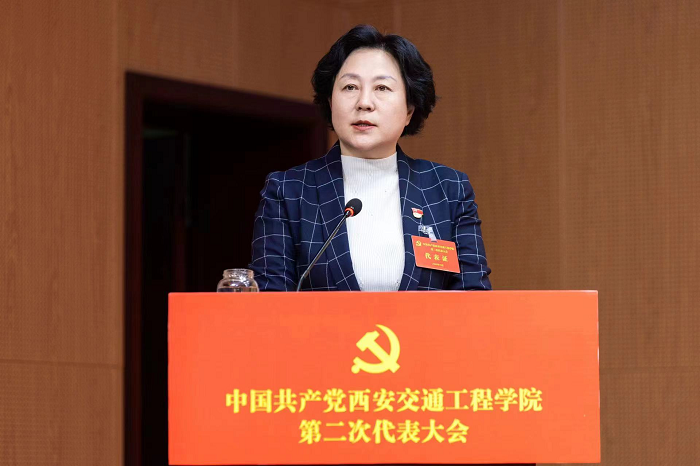 党委书记李萍代表中国共产党西安交通工程学院第一届委员会向大会作了题为《增强信心 鼓足干劲 凝心聚力 奋力谱写学校高质量发展新篇章》的工作报告。报告共分两个部分:一、过去6年的工作回顾;二、今后5年党建工作目标与主要任务。