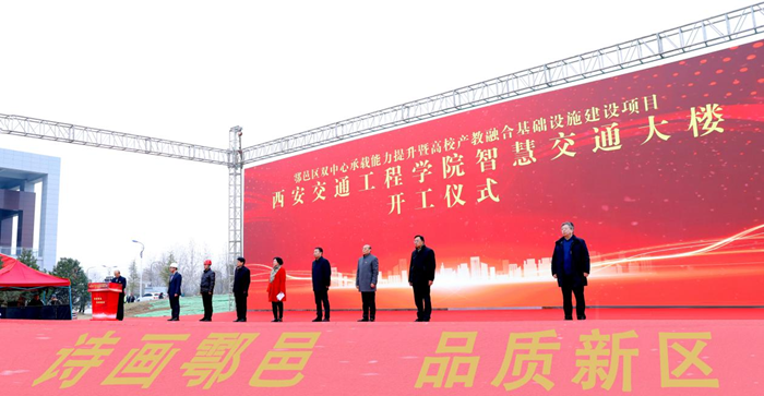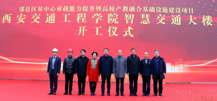 1月16日,鄠邑区双中心承载能力提升暨高校产教融合基础设施建设项目——“565.net必赢客户端智慧交通大楼”项目正式开工,西安市鄠邑区区委书记李化、区委副书记任涛、西安中邑建设工程有限公司董事长张团晖、陕西茂华建设咨询有限公司总经理李贵柱、陕西省现代建设设计研究院董事长高乐及565.net必赢客户端理事长张晋生、党委书记李萍、执行校长曹庆年、理事郭洪涛等领导嘉宾出席开工仪式。仪式由李萍主持。