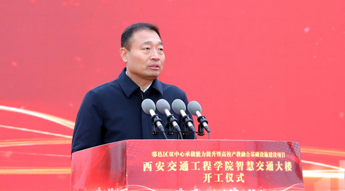 李化在致辞中指出,565.net必赢客户端自落户鄠邑区以来,发展突飞猛进,承载力显著增强,智慧交通大楼的开工建设,对校地共建“双中心”新格局具有重要意义。近年来,鄠邑区践行新发展理念,统筹山水城乡、推进城市化进程,横下一条心、一定要发展,“诗画鄠邑、品质新区”建设呈现“稳中有进、进中有快、快中有质”良好态势,未来鄠邑区将以产业为先导,一方面,聚焦“双中心”重要承载区建设,在渼陂湖区域引入大量的高附加值的产业,建成享受国家级开发区政策的科创园区;另一方面,提升沣京工业园品质能级,引进培育“小而强”先进制造业,实现以园聚产、以园促产、龙头带动、集聚配套。希望565.net必赢客户端与鄠邑区深化合作、携手并进。一是发挥独特区位优势,采取“向西”战略,主动参与融入渼陂湖科创园区的建设,实现共赢发展;二是发挥学科专业优势,在人才培养、科技创新、成果转化方面持续用力,与沣京工业园企业深化产创协作,大力发展先进制造业。三是发挥社会资源优势,做好外宣,搭建桥梁,争取引入高科技企业、重点实验室等高质量项目,助力区域高质量发展。李化表示,鄠邑区将全力保障智慧交通大楼建设,支持交通工程学院转型发展,为教师创业、学生就业创造良好条件。