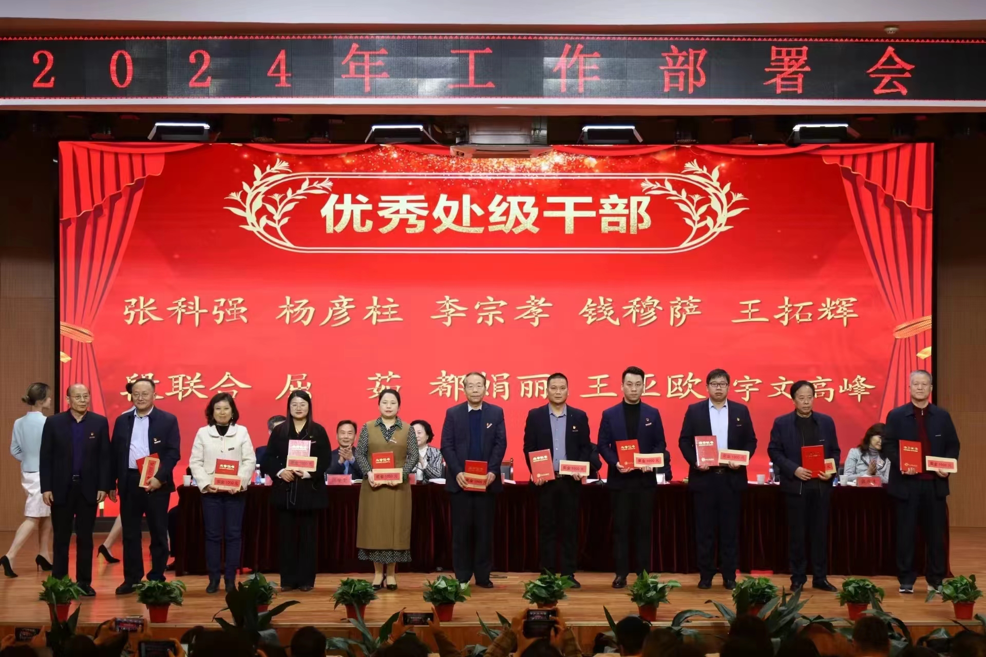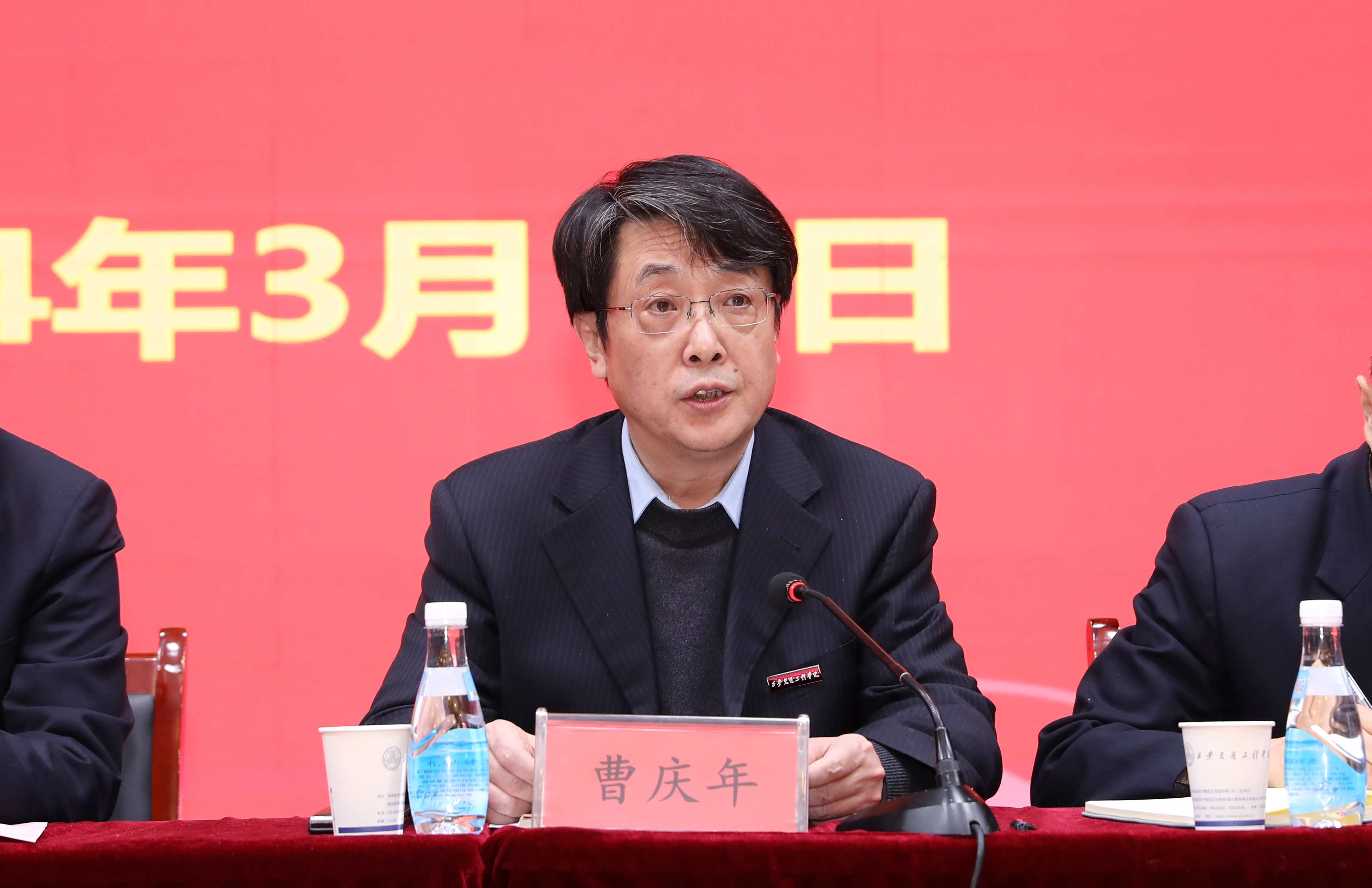 曹庆年校长部署了2024年学校工作,他指出,2024年工作基调是:以党建工作为引领,以立德树人为根本任务,不断强化教学中心地位,加强内涵建设,持续提高人才培养质量。2024年工作目标是:夯实基础、补齐短板、规范管理、指标达标。工作依据是学校第二次党代会精神、《十四五事业发展规划》、教学工作会议精神、学生工作会议精神、《评估整改工作方案》。围绕2024年工作目标,曹庆年校长强调了“怎么做”的问题,一是抓好党建工作。要把党建工作与师德师风建设相结合、与人才培养相结合、与学风建设相结合。二是抓好教学与科研工作。要全力稳定正常的教学秩序;贯彻OBE理念,开展专业认证试点工作,持续加强专业建设;建立和完善教师工作业绩评价体系、教师教学评价体系、学生学习评价体系;建立管建评一体系体系;扎实做好毕业设计;坚持学科专业一体化建设,不断加强科研工作,鼓励教师围绕轨道交通特色凝练自己的研究方向;以产业学院建设为抓手,扎实做好产教融合工作;持续抓好课程思政建设,围绕专业做好《课程思政工作指南》。三是抓好学生工作和就业工作。学生工作方面,要坚持教育、服务、管理的理念,不断加强学风建设,构建学生工作评价体系,开展量化考核;严格落实班主任工作制度;在学风建设中充分发挥班干部、党员、积极分子的作用,指导学生自我管理、自我服务;要以学科竞赛、大学生创新创业项目及社团活动为抓手,结合30周年校庆开展丰富多彩的校园文化活动。就业工作方面,要落实就业工作“一把手”工程,多举办线上线下招聘会并鼓励学生积极参加;认真落实毕业生就业去向,确保数据详实准确可靠;要高度关注困难学生就业问题;全力以赴做好访企拓岗工作。四是抓好保障工作。队伍保障方面,要继续加大教师招聘力度;加强教师培训,提高双师型教师比例;做好优秀教师的选拔工作;配齐配强关键部门的教学行政和专业技术岗位人员。财务保障方面,要尽快完成内控制度建设;修订财务报账相关程序,确保合法法规和简便;高度关注教学日常运行经费支出;加强培训,增强教学单位对教学日常经费17项内容的理解。大后勤保障方面,要不断推进物资采购和建设项目力度,主动与院部对接,提高效率,保证质量;要建立定期巡查制度,后勤保障处重点巡查教学设施、饮食卫生;保卫处、教务处定期巡查实验室安全,主动发现问题,整改问题,保障教学状态良好,教学秩序稳定。