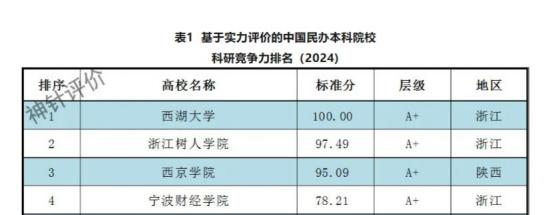 表4最佳科研生态位民办本科院校名单(2024)