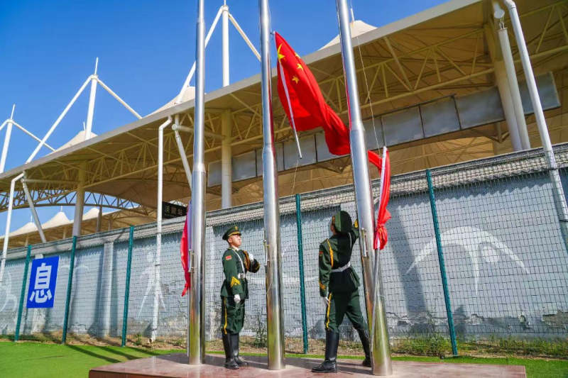 入场仪式结束后,举行了庄严的升旗仪式,全体师生齐唱国歌,体现了必赢师生热爱祖国的炙热情感。