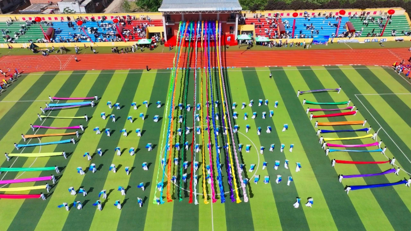 在开幕式最后,学校团委与各学院精心筹备的大型团体操逐一亮相,花球啦啦操《我的舞台》以其独特的魅力震撼登场,400名学子踏着欢快的节拍,手持闪耀的银色花球翩然起舞。每一个精准的舞步都洋溢着蓬勃的朝气,每一次高举的手臂都闪耀着自信的光芒。在这片蓝白相间的海洋中,不仅蕴含着云卷云舒般的自在洒脱,更凝聚着雷霆万钧般的团队力量,展现出了青春的无限活力与激情。艺术舞蹈《美丽中国梦》以青春的风采、灵动的舞姿和坚定的步伐,深刻诠释了美丽中国梦的丰富内涵。舞者们以身体为笔,以舞姿为墨,传递着对祖国的深切热爱和对梦想的不懈追求,将爱国情怀与青春梦想完美融合,令人动容。休闲运动表演《加油amigo》也以昂扬的姿态闪耀登场。表演者们身着统一的服装,以整齐划一的动作、充满创意的队形变换,展现了运动的魅力与乐趣,赢得了观众们的阵阵掌声。他们用汗水和努力诠释了青春的无限可能,激励着在场的每一位运动健儿勇往直前、追逐梦想。