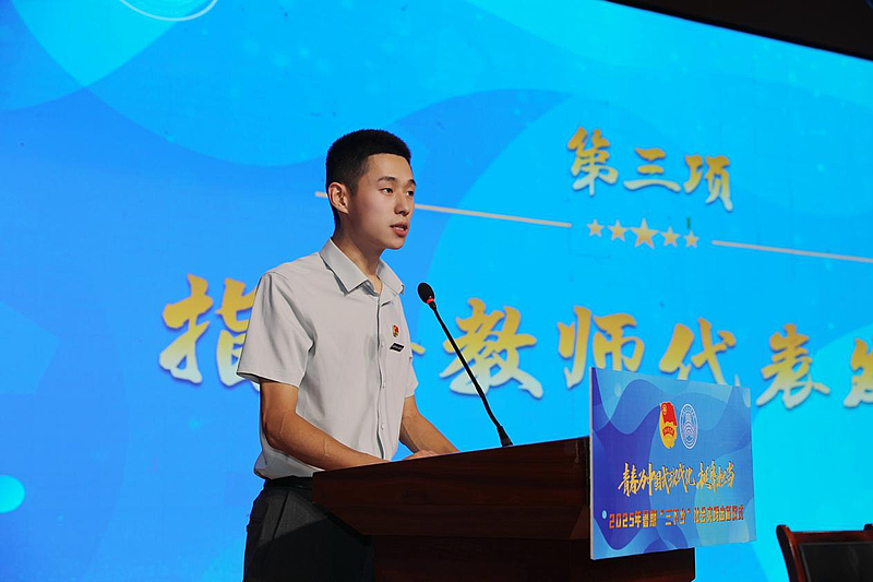 指导教师代表薛华在发言中表示,将以初心领航,做学生思想的引路人;以匠心护航,做学生社会实践的同行者;以恒心架桥,做社会实践的长效推动者。实践队员代表李嘉炜号召广大团员青年,作为新时代大学生,应当带着知识走出象牙塔,以躬身实践的姿态,把论文写在祖国大地上。用脚步丈量责任,用眼睛发现力量,用耳朵倾听期盼,用内心感应时代,在实践中践行“请党放心,强国有我”的青春誓言。
