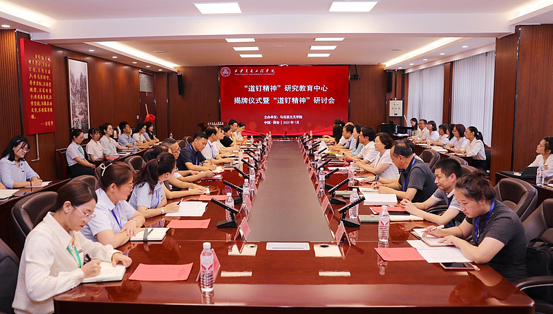 李萍和张慧共同为“道钉精神”研究教育中心揭牌,与会人员以热烈的掌声表示祝贺,现场气氛令人鼓舞。