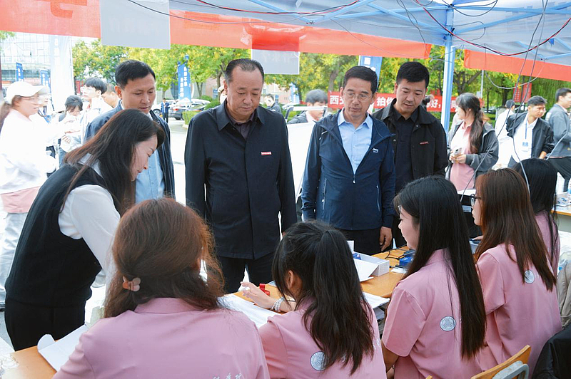 西广场迎新点,校领导们拿起桌上的报到流程表