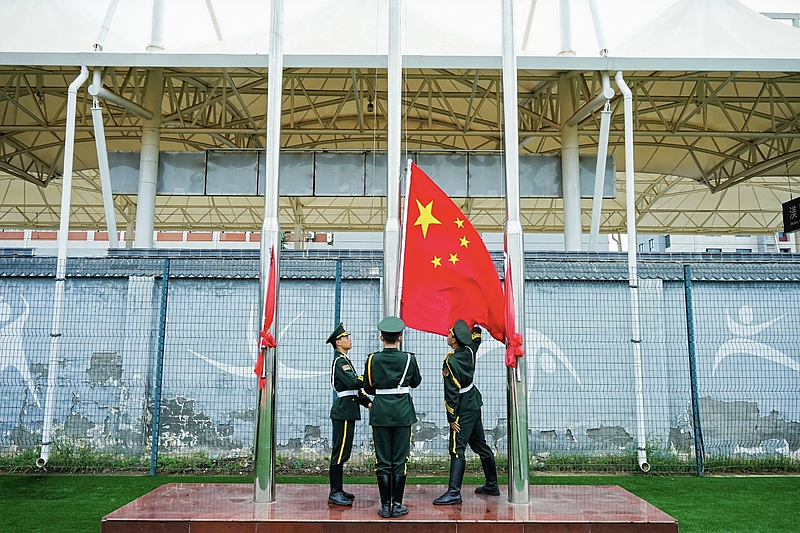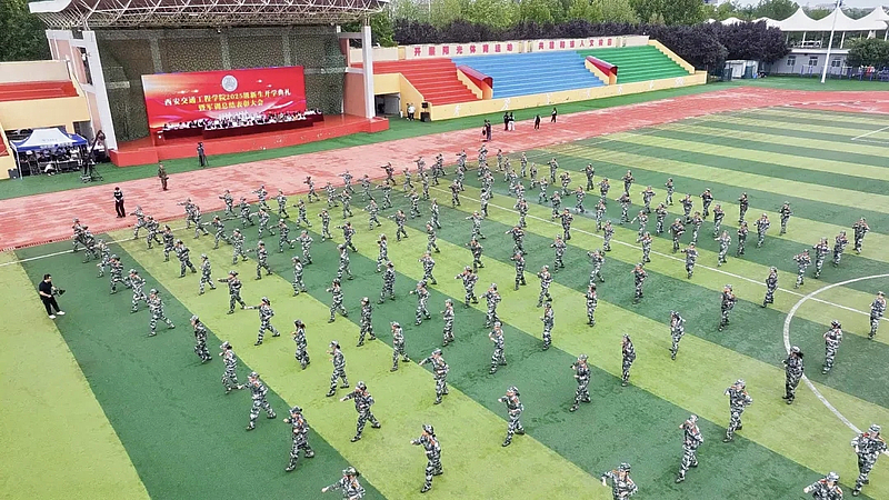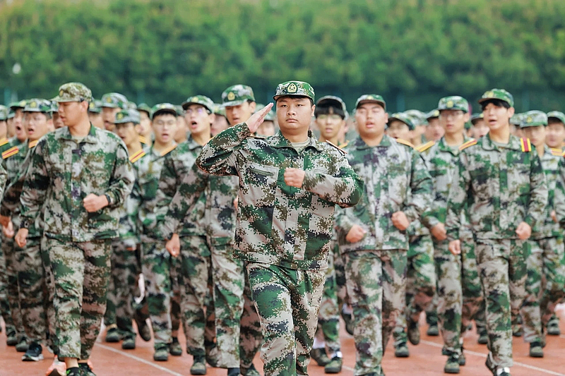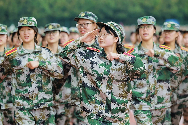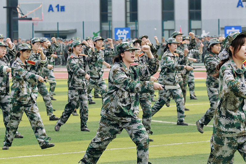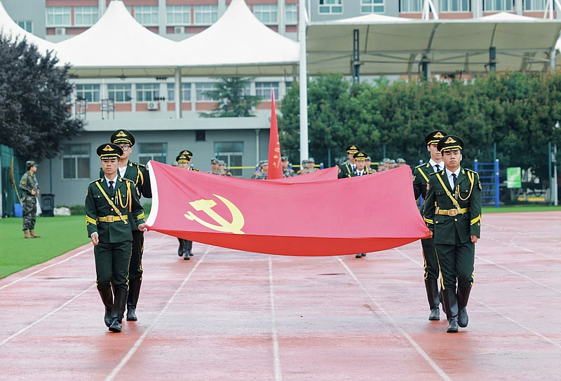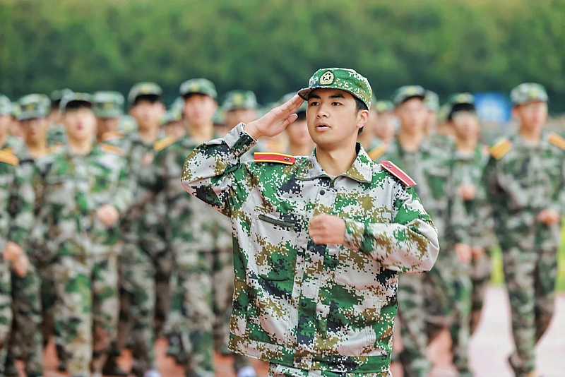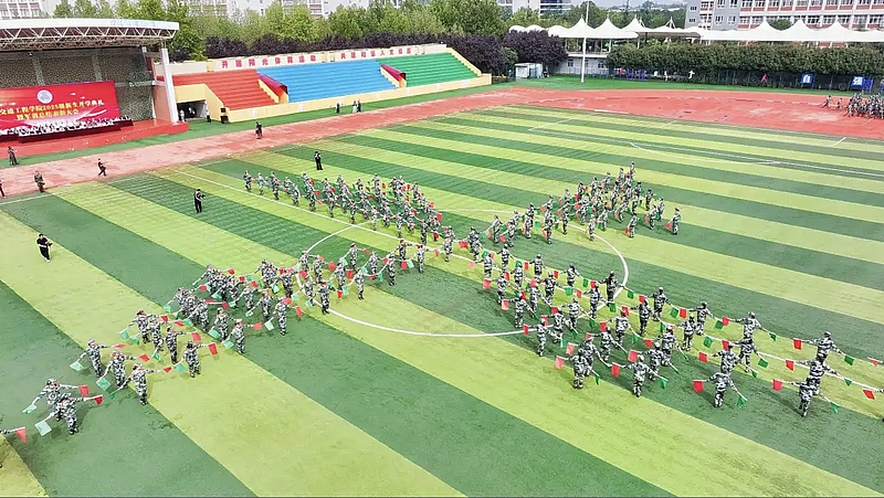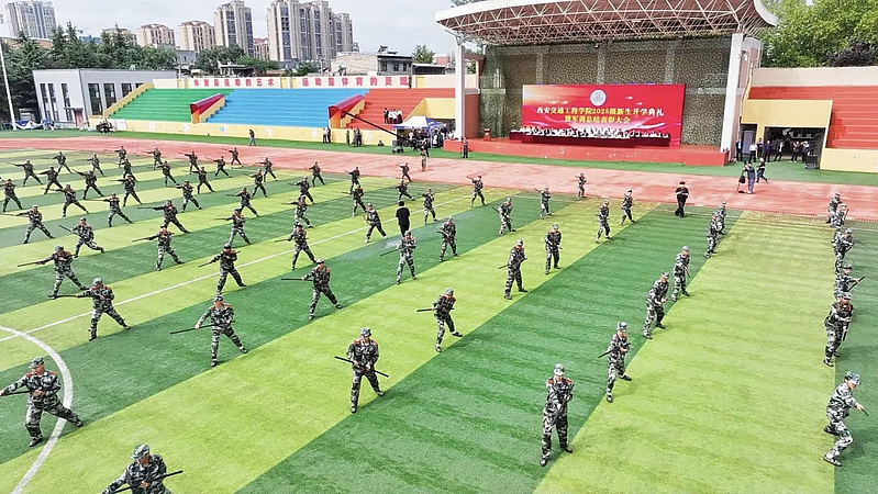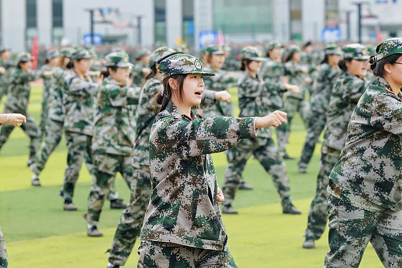 上午九时许,庄严的国歌声中,典礼正式拉开帷幕。同学们目光坚定、步伐铿锵、口号响亮,以饱满的精神和整齐的队列依次经过主席台,接受检阅。分列式上,军体拳方队、棍术方队、花样方队、女子匕首操方队等训练项目用高昂的斗志和振奋人心的口号,全面展示了十四天军训的丰硕成果,彰显出2025级新生昂扬的精神面貌和顽强的意志品质。