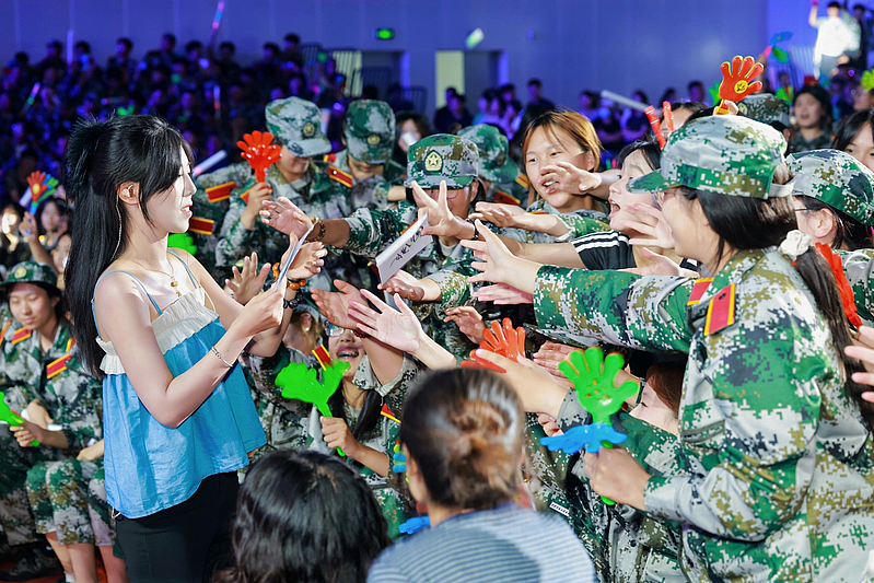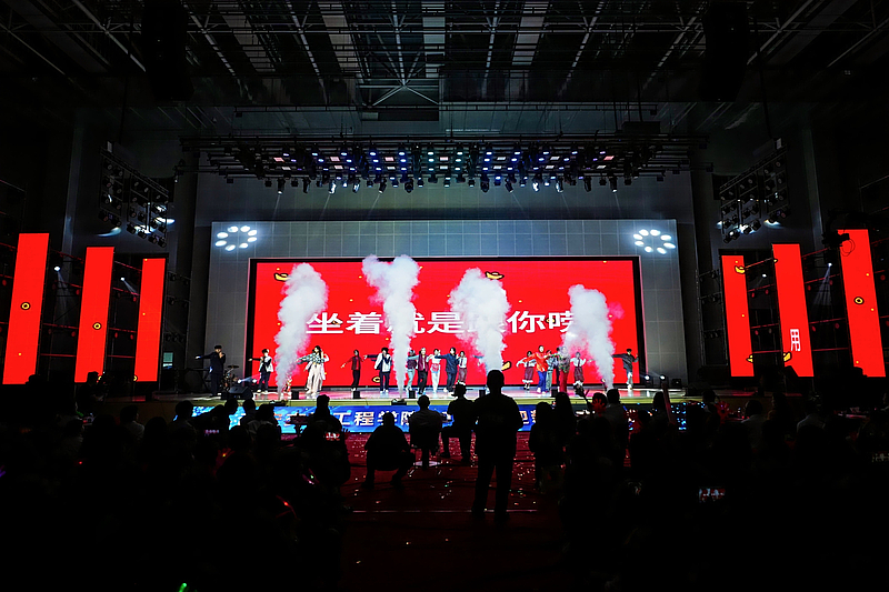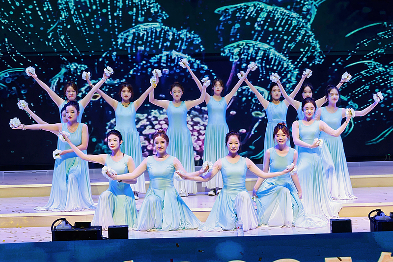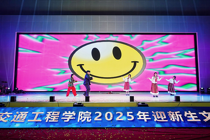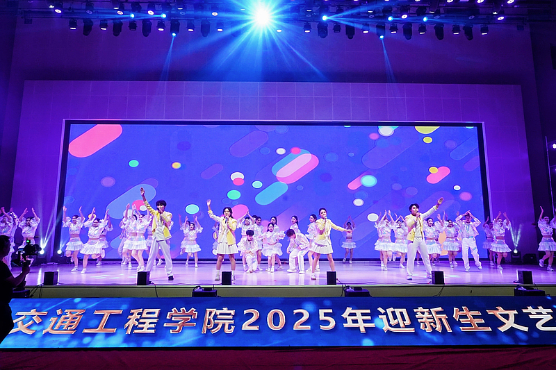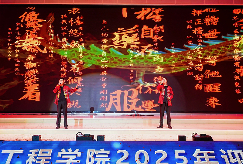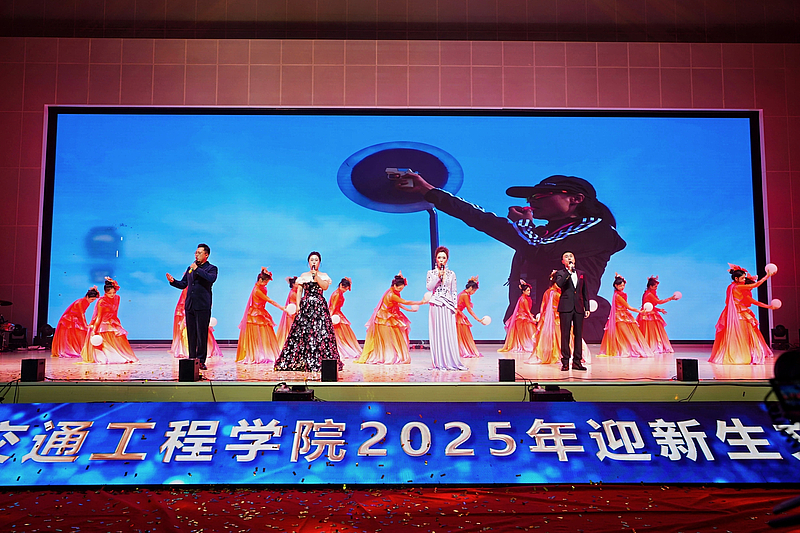 晚会在炫酷的灯光秀中拉开帷幕,随着阵阵烟花全体2025级新同学们的姓名“火力全开”,瞬间点燃全场气氛。大学生艺术团带来开场歌舞《我的未来不是梦》,激昂的歌声与充满活力的舞蹈相得益彰,表达了对新同学的美好祝愿。由宁慧、李文龙、路亮、李梦阳老师深情演唱、舞之韵民族社倾情伴舞的《道钉之光》,以铿锵之力展现了必赢人坚韧不拔的精神品质;舞蹈《茉莉花开》,以优雅灵动的舞姿描绘出江南水乡的诗情画意,尽显传统韵味;大学生艺术团接连奉上充满力量的歌曲《是龙》和幽默十足的街舞《喜剧之王》,瞬间引燃现场,展现了青年学子的蓬勃朝气。