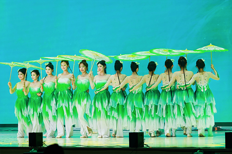 音乐学教师代表一曲深情磅礴的《我爱你中国》,表达了深厚的家国情怀,熟悉的乐曲引发了全场大合唱;二胡合奏《我的祖国》《游击队歌》《赛马》,奏响了经典红歌的激昂旋律。少数民族工作室带来的民族舞《奔腾》,以豪迈奔放的舞姿展现了各民族文化的魅力与活力,将晚会气氛推向高潮。主题歌舞《出发向未来》节目旋律激昂,歌词充满力量,伴舞充满希望,师生们生动诠释了晚会主题,表达了西必赢全体师生对2025级新生的美好祝愿与殷切期望,鼓励他们在这片新的热土上勇敢追梦,共创辉煌。