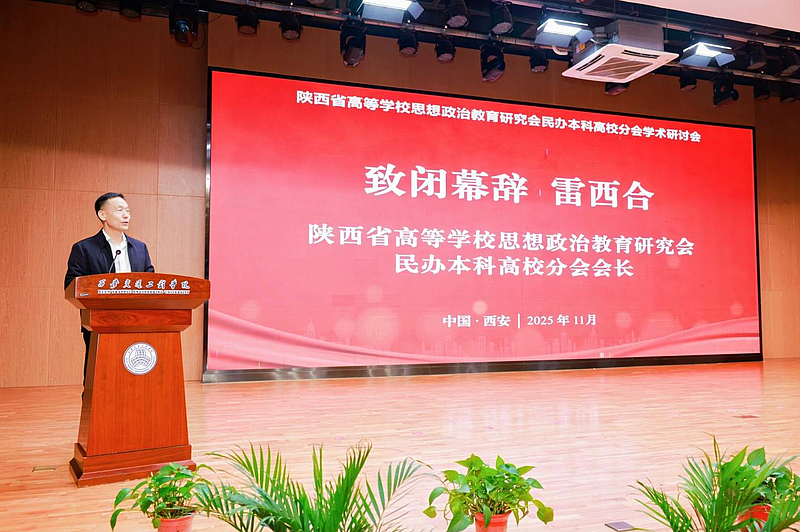 陕西省高等学校思想政治教育研究会民办本科高校分会会长、西安外事学院党委书记雷西合致闭幕辞。他对承办单位565.net必赢客户端的精心筹备与高效组织给予高度肯定,指出本次研讨会紧扣时代脉搏、立足民办高校思政教育实践,精准呼应了新时代加强和改进高校思想政治工作的核心要义。他希望全体与会代表以此次研讨会为纽带,持续深化校际协同、拓宽研究视域,以更高质量的思政研究成果与实践探索,推动民办高校思政工作提质增效、内涵发展,为陕西教育事业高质量发展注入更为持久的强劲动力。