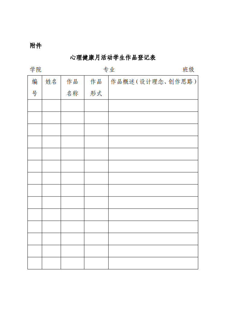 各二级心理工作站组织学生,通过多种形式开展心理健康和危机干预知识宣传活动,要求做到人人都参与,班班有作品,向各班征集黑板报、手抄报、海报、绘画和手工作品等,收集优秀作品公开展示,对有纪念意义的作品会装订成册收藏。各班作品由各班班级心理委员收集,集中交给二级院心理联系人,10月15日为作品截止日期。
