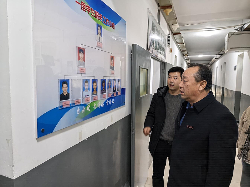 在“一站式”学生社区,王勇副校长实地走访了社区整体环境布局、配套设施建设及运维情况,重点检查了社区片长、楼长、层长等网格化管理人员的信息公示情况,细致核实信息的完整性与准确性。他强调,“一站式”学生社区是连接学校与学生的重要纽带,更是落实立德树人根本任务的关键服务平台。构建清晰规范、公开透明的网格化管理服务体系,是提升社区服务精准度和实效性的核心抓手。他要求,要常态化做好各级负责人信息的更新与完善工作,通过公示牌清晰标注每位管理人员的职责范围、联系电话等关键信息,确保学生在遇到困难时能够快速精准对接责任人、高效解决问题,真正打通服务学生的“最后一公里”,让社区管理更规范、服务更有温度。