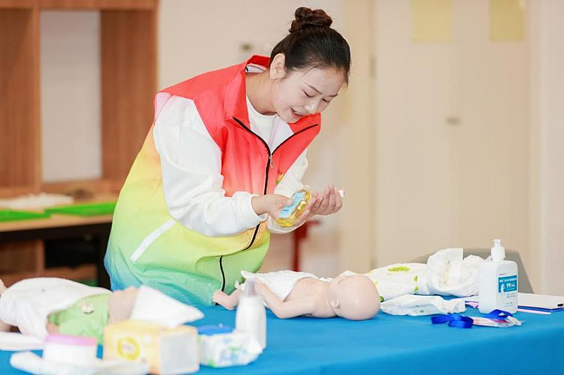 本次高校组决赛内容涵盖婴儿生理需求识别、情感交流、安全护理与技能答辩等多个模块。在生理需求识别环节,选手需在迅速判断婴儿哭闹、动作等行为所表达的饥饿、排泄或肠绞痛等需求,并提供相应的安抚方案;情感交流部分通过角色扮演,考察选手与婴儿眼神互动、语言沟通和肢体抚触的能力,突出安全依恋关系的建立;安全护理模块则聚焦日常照护中的意外预防,如呛奶急救等实操项目,要求选手严格遵循操作规范;技能答辩环节由评委围绕早期教育理论等专业知识展开提问,全面检验选手的理论基础与综合运用能力。赛程各环节衔接紧密,既强调实操技能的精准性,也重视理论知识的支撑作用,全方位评估参赛者的专业素养与应急处理水平。