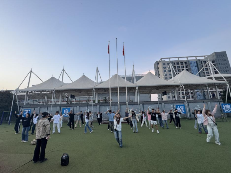 随着节奏感十足的音乐,活动正式拉开帷幕。从基础的拉伸动作到核心力量训练,科学的指导让每位同学都感受到了运动的魅力。随着音乐节奏的起伏,大家整齐舞动。伸展、踢腿、转身,每一个动作都认真且投入。在欢快的氛围中,女生们相互鼓励,彼此交流着动作技巧与心得。