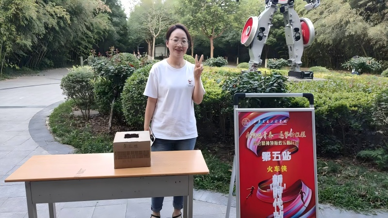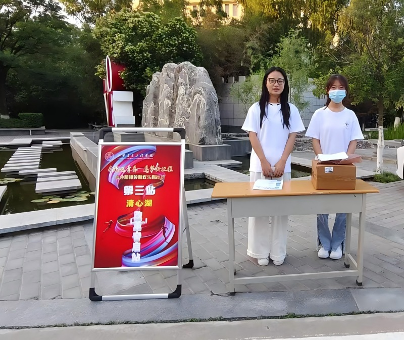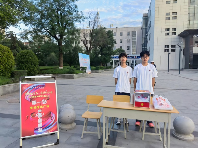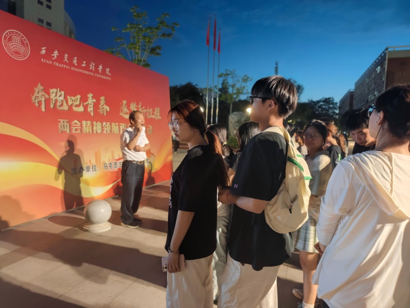 段联合院长在图书馆北广场向参加本次活动的师生介绍了本次活动举办的背景和意义、明确了活动路线和注意事项等。本次两会精神领航欢乐跑行动路线,以图书馆北广场(第一站“一五”启航站)作为起点,第二站图书馆西广场(五四宪法站),第三站清心湖(改革奋启站),第四站风车铁桥(世纪跨越桥站),第五站火车侠(新时代站),第六站渼陂站(赶考站),第七站大操场(逐梦新征程站)。整个路线设置七个打卡点,每到达一个站点进行两会知识答题,并获取相应的通关物品,完成打卡(盖章)直至结束。