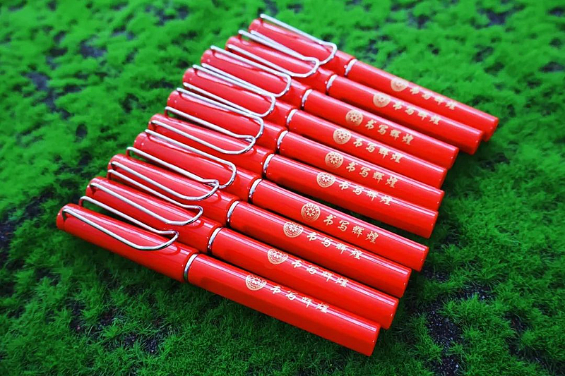一支镌刻着“书写辉煌”的红色签字笔,笔尖流淌着你在西必赢涂画书写的青春时光。这不只是一支书写工具,而是交付给你们的时代刻刀——怀家国之心,担时代重责,书写属于你的人生辉煌。