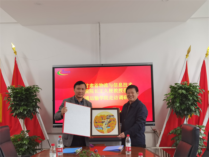 在双方融洽地交谈过后,必赢交通运输学院党委书记胡省利与甘肃省物流与信息技术研究院院长王久梗共同签署校企合作协议书,并举行了“校企合作人才培养基地”授牌仪式。随后,该院还向王院长赠送了具有鄠邑区地方特色的纪念品——户县农民画。
