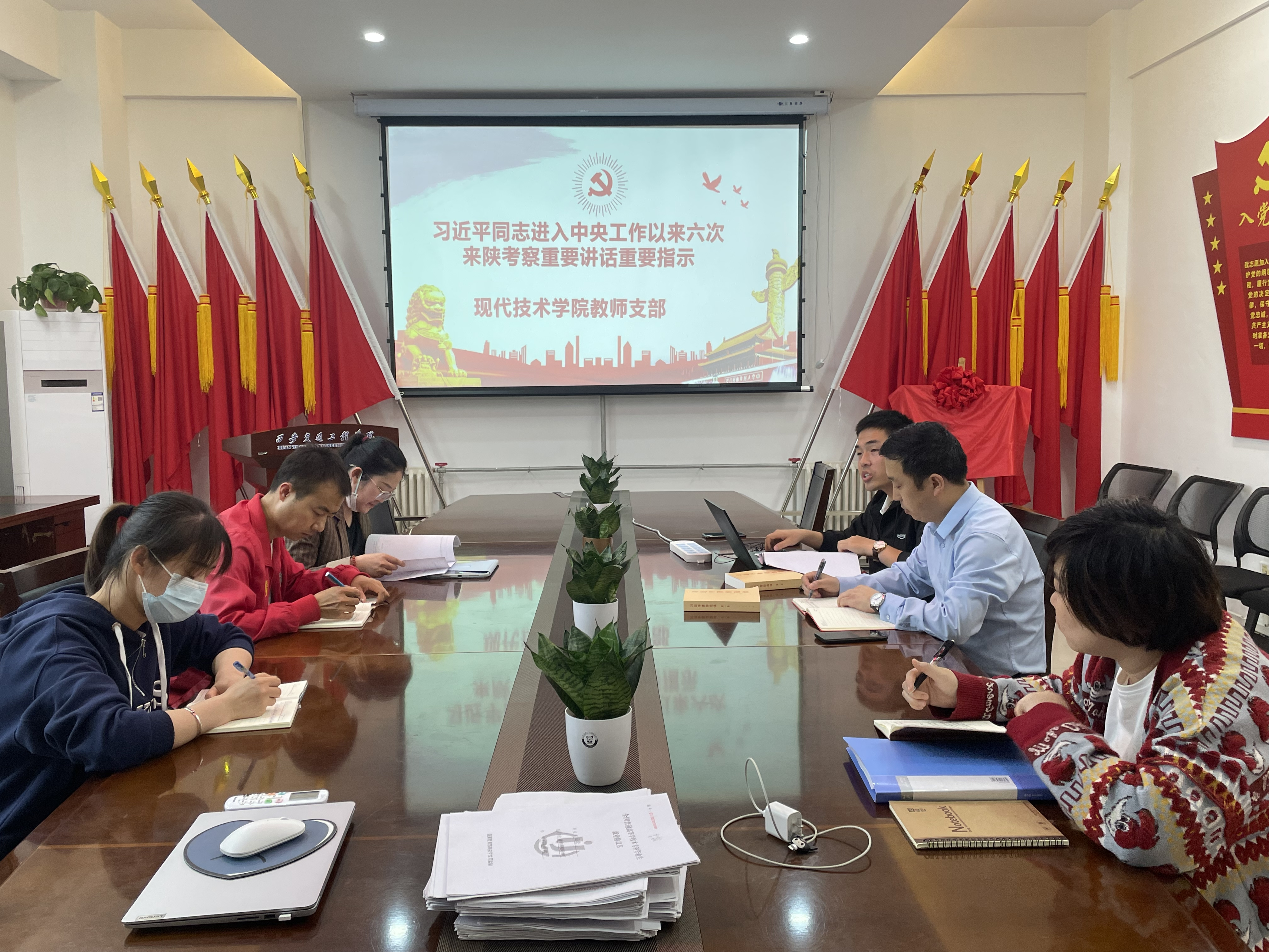 为深入学习贯彻习近平新时代中国特色社会主义思想和习近平来陕重要讲话、重要指示精神,结合现代技术学院党委学习安排,5月31日下午该院教师支部全体党员在6-212学习习近平来陕重要讲话、重要指示精神。