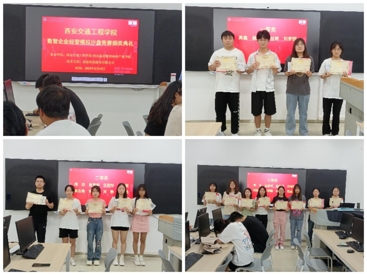 6月15日在数智商科产业学院成功举办了“数智企业经营模拟沙盘”竞赛颁奖典礼,由数智商科产业学院院长刘晓丽老师为本次校赛获奖同学颁奖。刘院长对获奖的学生提出表扬,并鼓励学生积极参与校内活动,为自己的履历增光添彩,为自己奠定扎实的专业基础知识,并嘱咐参加省赛的两支队伍,认真备战,努力取得优异成绩,进入国赛。