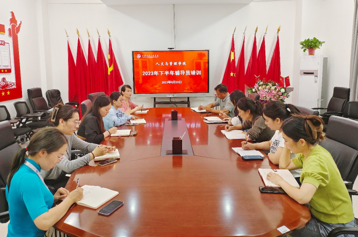 为有效提高新进辅导员职业素质能力和育人水平,进一步加强辅导员队伍职业化、专业化建设,帮助新进辅导员明确职责定位、提升履职能力,更好地服务学生成长,9月19日,人文与管理学院开展了2023年下半年辅导员培训班。该院党委书记兼副院长李沙沙、副院长何成以及新进辅导员参加此次培训。