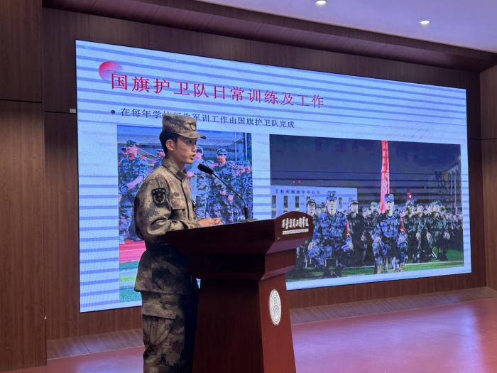 国旗护卫队队长赖麒同学作工作总结