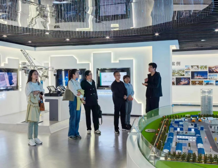 品茗数字教育事业部经理陈哲带领参观了杭州品茗信息技术有限公司总部和智能建造展厅,介绍了公司背景、发展历程和业务发展情况。通过参观智能建造展厅,深入学习了当前智能建造领域BIM、装配式建筑、施工机器人、智慧工地等建筑信息技术的发展和应用情况。