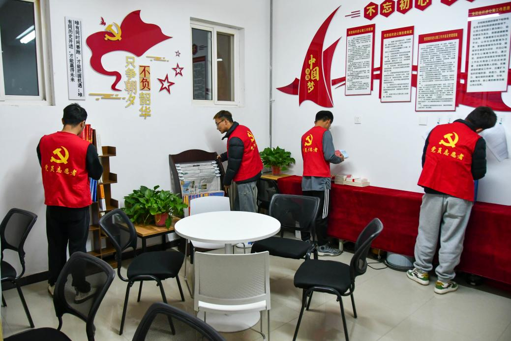 交通运输学院党员同志在布置“一站式”学生公寓服务中心