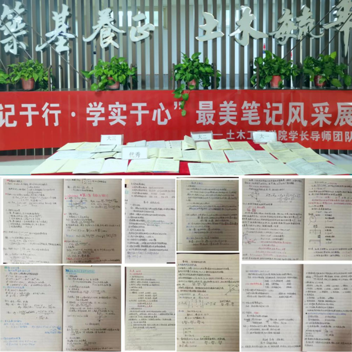 ——组织开展最美笔记评选活动。为引导学生养成良好的学习习惯,构建学风建设长效机制,树立良好的学习榜样,挖掘优秀的学习典型,土木工程学院学长导师团队组织开展了“笔记于行 学实于心”最美笔记评选活动。本次活动充分展现了学生一丝不苟、蓬勃向上、积极进取、好善好学的良好风貌;笔记镌刻着努力奋斗过的痕迹,“诗书勤乃有,不勤腹空虚”,让我们趁着青春年华勤勉而学,并为学风建设贡献属于自己的一份力量。