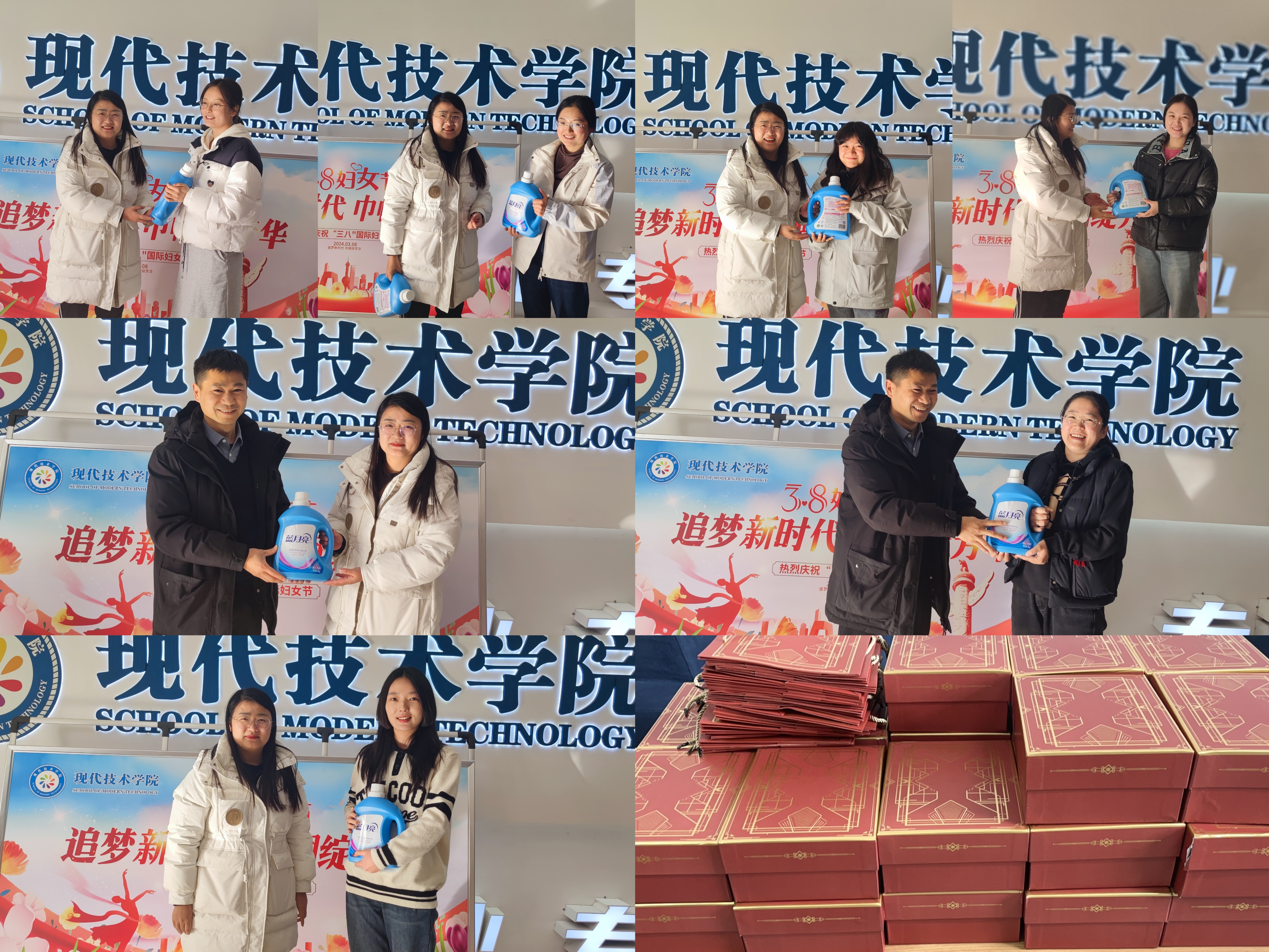 ---我院工会为女教工发放福利。在“三八妇女节”到来之际,为感谢全体女职工的辛勤工作和卓越贡献,进一步激发女职工爱岗敬业,锐意进取的工作热情,学校和学院为女职工精心准备了暖心礼物,让女职工充分感受到学校大家庭的温暖,度过一个充满温馨而美好的节日,女教工们感受到了组织关爱,提升了女同胞们的幸福感和归属感。大家纷纷表示,巾帼不让须眉,定将立足本职岗位,以更加饱满的热情和斗志投入到工作当中,继续发扬志存高远、只争朝夕、踔厉奋发的精神,充分发挥自身优势,深入挖掘潜能和智慧,以更加饱满的热情、执著的追求,积极工作,锐意进取,不断提高自身综合素质,做师德师风的楷模、爱岗敬业的表率、家庭美德的模范、社会风尚的先锋,以实际行动建功新时代,为学校发展再谱华章!