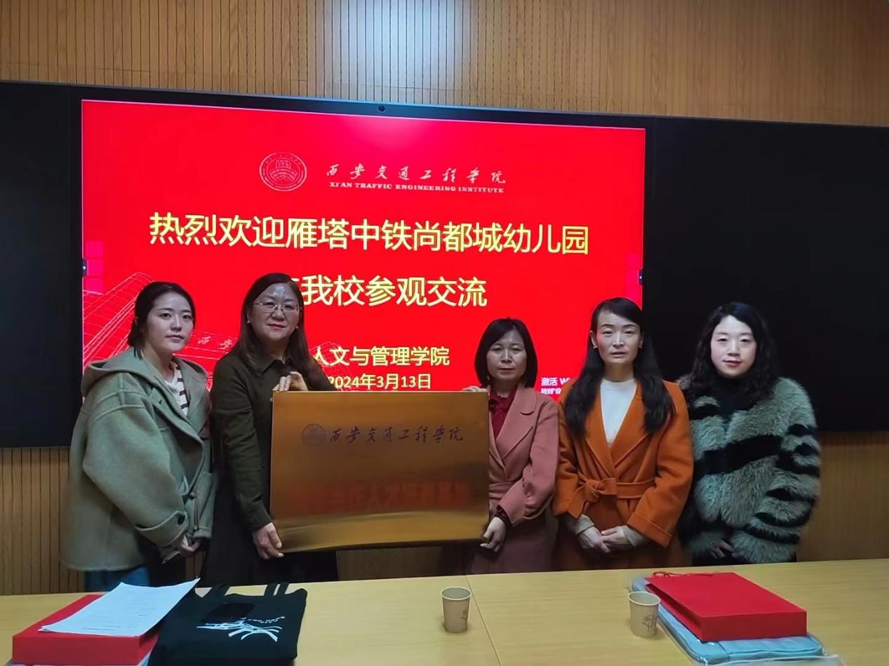 在实验楼A三楼智能微格实训室2,人文与管理学院党委书记兼副院长李沙沙、副院长兼学前教育专业带头人郝柯羡、毕业班辅导员郭雪燕一起接待了来校参观的雁塔中铁尚都城幼儿园一行。通过与该园洽谈,了解了该园在舞蹈特长生、环创特长生和新媒体运营特长生等方面的人才需求,就下一步校园合作确定了方面,随后双方签订了校企合作协议。