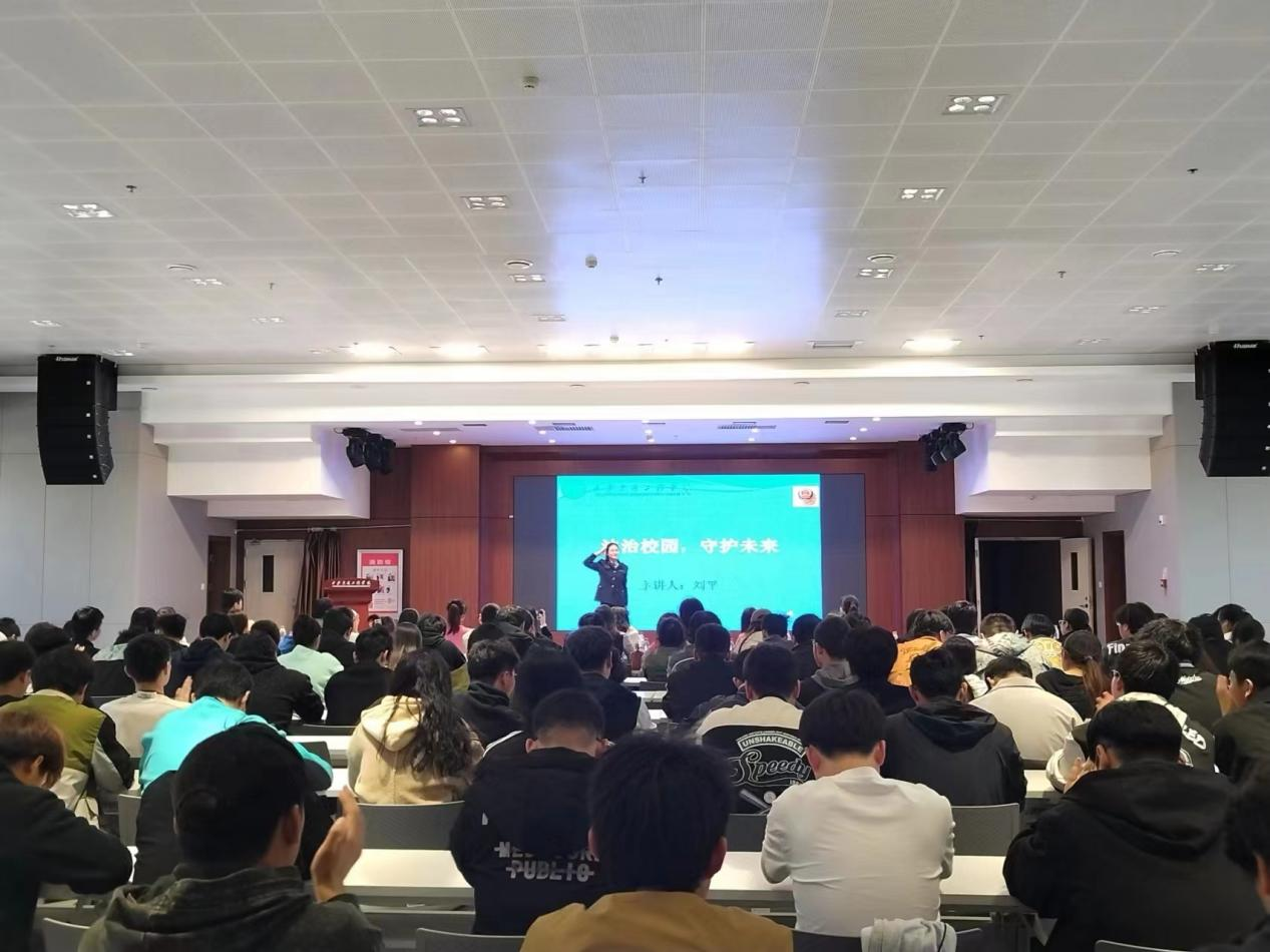刘平警官以“手指接龙、手指运算操”这一简单的热身游戏拉开了此次讲座的序幕。刘平警官结合近些年青少年犯罪比例高的犯罪类型,以案说法,围绕法的概念及导致青少年犯罪心理的根本原因、青少年如何预防犯罪、做守法公民等方面进行了普法宣讲,通过一个个鲜活生动的案例,为同学们指出生活中可能会遇到的违法犯罪行为。同时,还就有效预防犯罪的方法向同学们进行重点传授,引导大家在生活中自觉树立法治意识,做一名知法、懂法、守法的学生。此次讲座在潜移默化中提升了学生的安全意识、法律意识和自我保护意识,得到了学校师生的高度认可,取得了良好的效果。