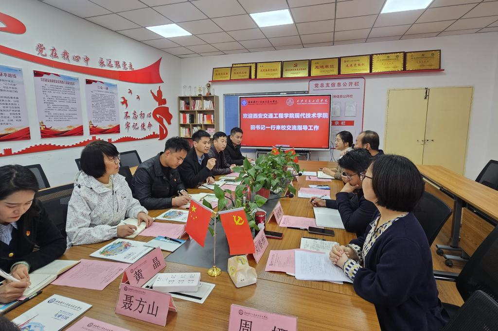 为全面贯彻落实习近平总书记关于党的建设的重要思想,特别是关于学校党建的重要讲话和重要指示精神,进一步提升学校党建工作水平,促进学校党建工作与教育教学工作深度融合,高质量推进学校各项工作优质发展,3月26日,现代技术学院党委书记兼副院长田宏顺,副院长党亮亮,学生支部书记、支部委员、团总支书记等一行前往陕西国防工业职业技术学院进行党建工作学习交流。