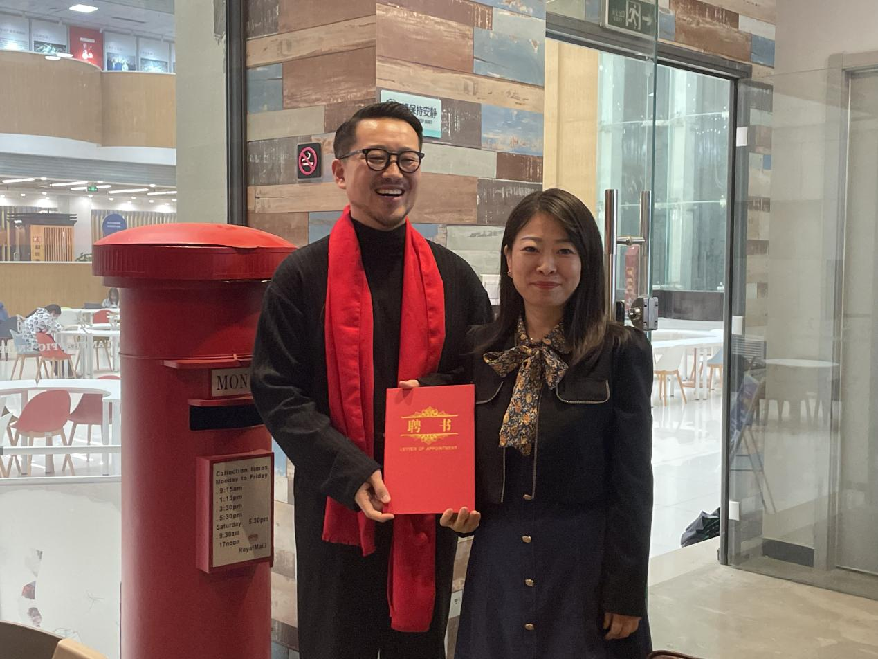 学生就业指导服务中心主任王丹为左南颁发校友导师聘书