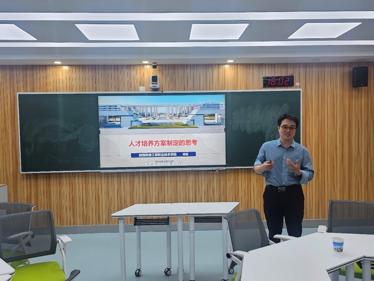 4月24日下午,现代技术学院在智慧教室开展了高职人才培养方案修订培训会。特别邀请了西安铁路职业技术学院交通运输学院的副院长刘新强,陕西铁路工程职业技术学院教务处副处长杨勃与我院各个专业带头人进行交流,现代技术学院都院长主持此次培训会。