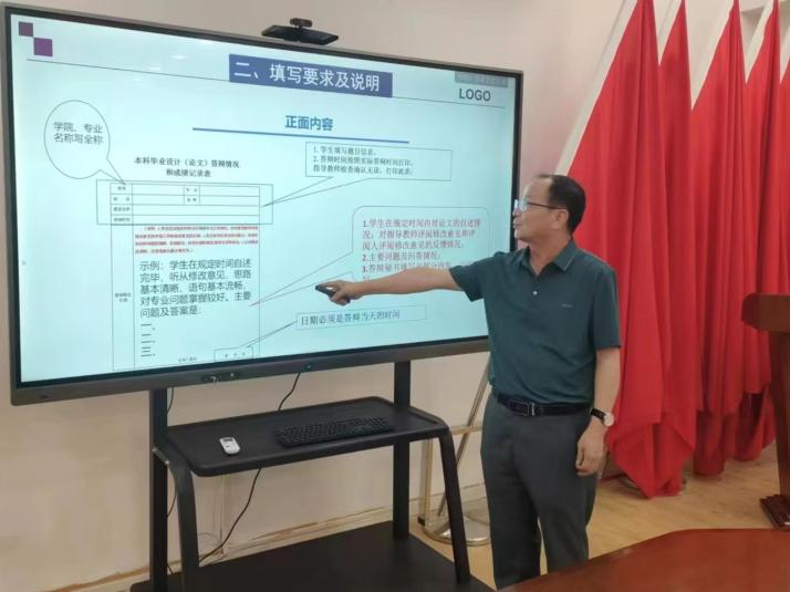 会上,任小文首先详细解读了毕业设计成绩评定的具体标准和流程。他强调,成绩评定将全面考虑学生的创新能力、实践能力和学术水平,力求做到公正、公平。同时,他还对成绩记录流程进行了详细说明,包括成绩评定、汇总、公示等环节,确保整个过程的规范性和透明度。教师们要严格按照学院要求,认真履行评分职责,确保每一份成绩都能真实反映学生的努力和成果。