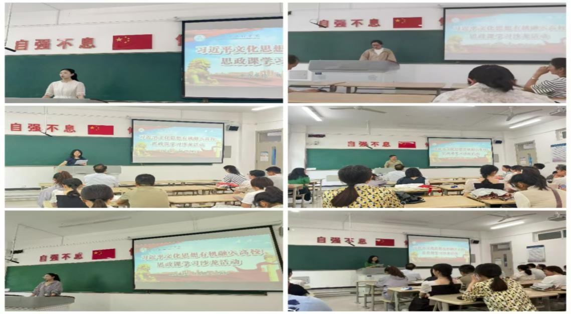 为进一步将习近平文化思想融入高校思政课教学,提升思政课教学质量和水平,培养担当民族复兴大任的时代新人,2024年5月27日,马克思主义学院在1-101开展了习近平文化思想有机融入高校思政课学习沙龙活动,马克思主义学院副院长李艳主持会议,学院全体教师参加。此次沙龙活动分为教师分享和教师互动两个环节。