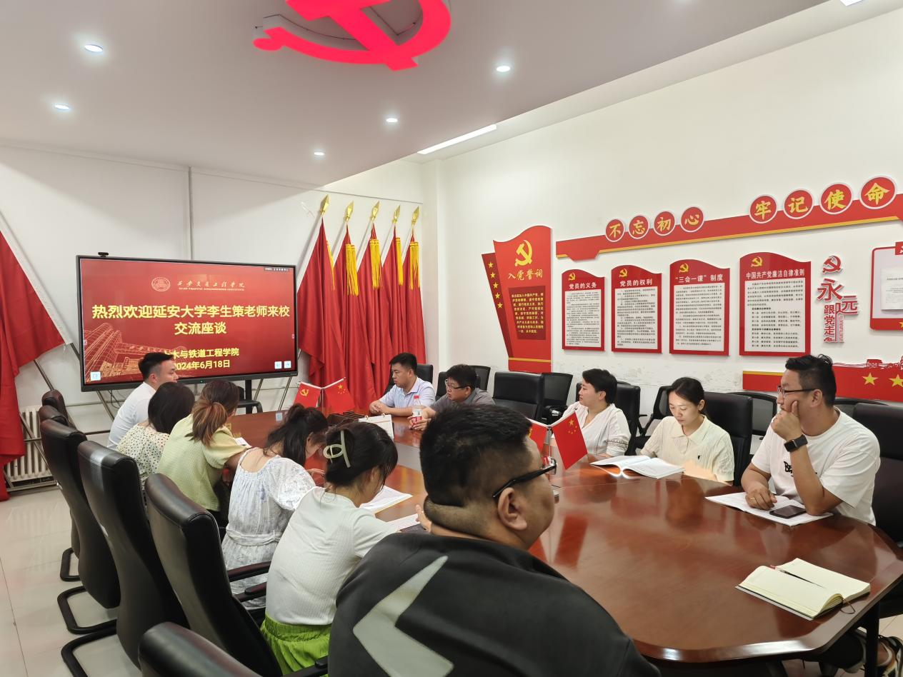 讲座结束后,李生策老师与土木与铁道工程学院辅导员座谈交流。土木与铁道工程学院党委书记张雯雯对李生策老师的到来表示热烈欢迎,并介绍了辅导员工作和思想政治教育基本情况。李生策老师分享了辅导员工作室建设和学生思想政治教育的先进的经验和科学的方法,对于提高必赢辅导员的工作水平,促进学生思想政治教育工作都具有重要作用。