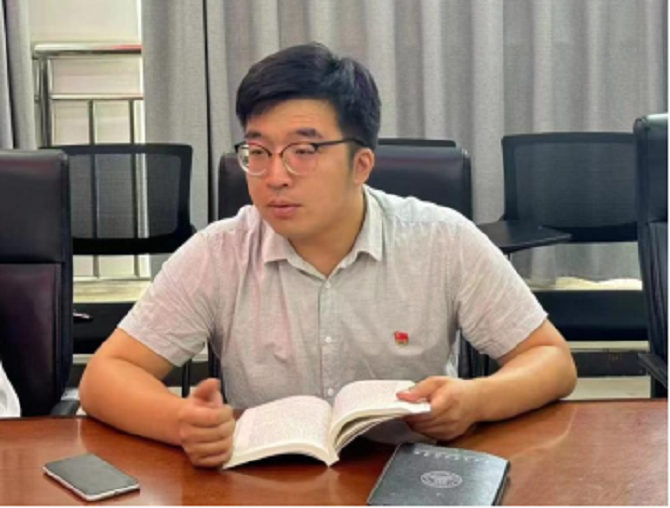 学生一支部书记肖茹峰领学省委书记赵一德对全省学校思政课建设的批示和全省学校思政课建设座谈会精神。他提出要深入学习贯彻习近平总书记关于思政课建设的重要论述,深刻认识思政课是落实立德树人根本任务的关键课程,进一步增强办好思政课的责任感使命感。要聚焦目标任务,坚持问题导向,着力解决制约思政课建设的突出问题,推动全省学校思政课建设不断取得新成效。要加强组织领导,强化责任担当,凝聚工作合力,为思政课建设提供有力保障。要求广大思政课教师要牢记职责使命,不断提升自身素质和能力水平,努力成为学生健康成长的指导者和引路人。