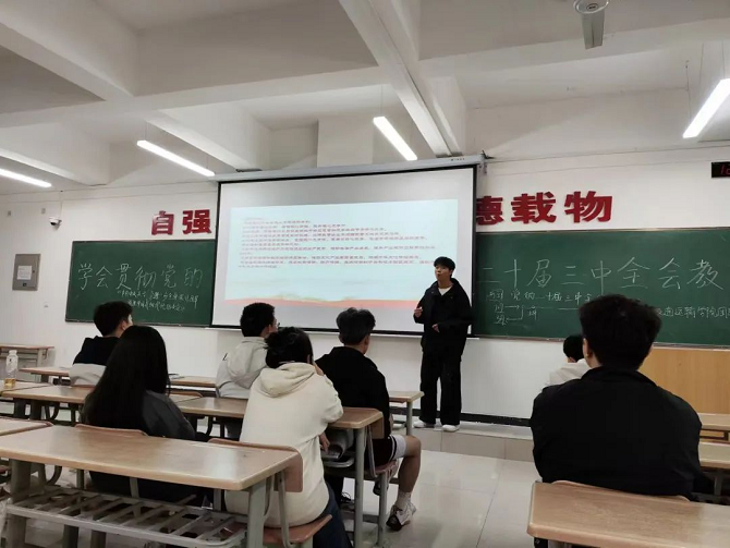 党的二十届三中全会是在以中国式现代化全面推进强国建设、民族复兴伟业的关键时期召开的一次十分重要的会议。习近平总书记的重要讲话,更是为我们在新征程上进一步全面深化改革指明了方向。同学们通过认真学习,深刻领会到进一步全面深化改革的主题紧紧围绕着推进中国式现代化展开。这不仅是当前形势下的必然要求,更是凝聚全党全国力量的重要举措。在学习交流中,同学们们纷纷表示,将以此次学习为契机,不断提升自己,积极投身到改革的伟大实践中,为实现中华民族伟大复兴的中国梦不懈奋斗。