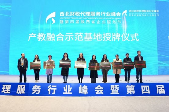 近日,西北财税代理服务行业峰会暨第四届陕西省企业服务节在西安高新国际会议中心盛大举行。本次峰会由中国总会计师协会代理记账分会、西安市财政局、国家税务总局西安市税务局联合指导,西安市代理记账行业协会主办,青海省、宁夏自治区、乌鲁木齐市、兰州市、西宁市、宝鸡市、商洛市等代理记账行业协会联合主办,陕西省总会计师(财务总监)协会、西安市会计学会、西安市财政学会、西安市税务学会等联合支持,汇聚行业精英、专家学者及政府代表等2000余人,共同探讨财税代理服务行业的最新趋势、技术创新、政策解读及企业服务升级策略,推动行业健康、可持续发展。人文与管理学院白云副院长应邀参加本次会议。参加本次峰会产教融合示范基地授牌仪式,标志着数智商科产业学院建设工作再上新台阶,产教融合见成效,所培养的高素质人才得到了社会各界的充分认可。