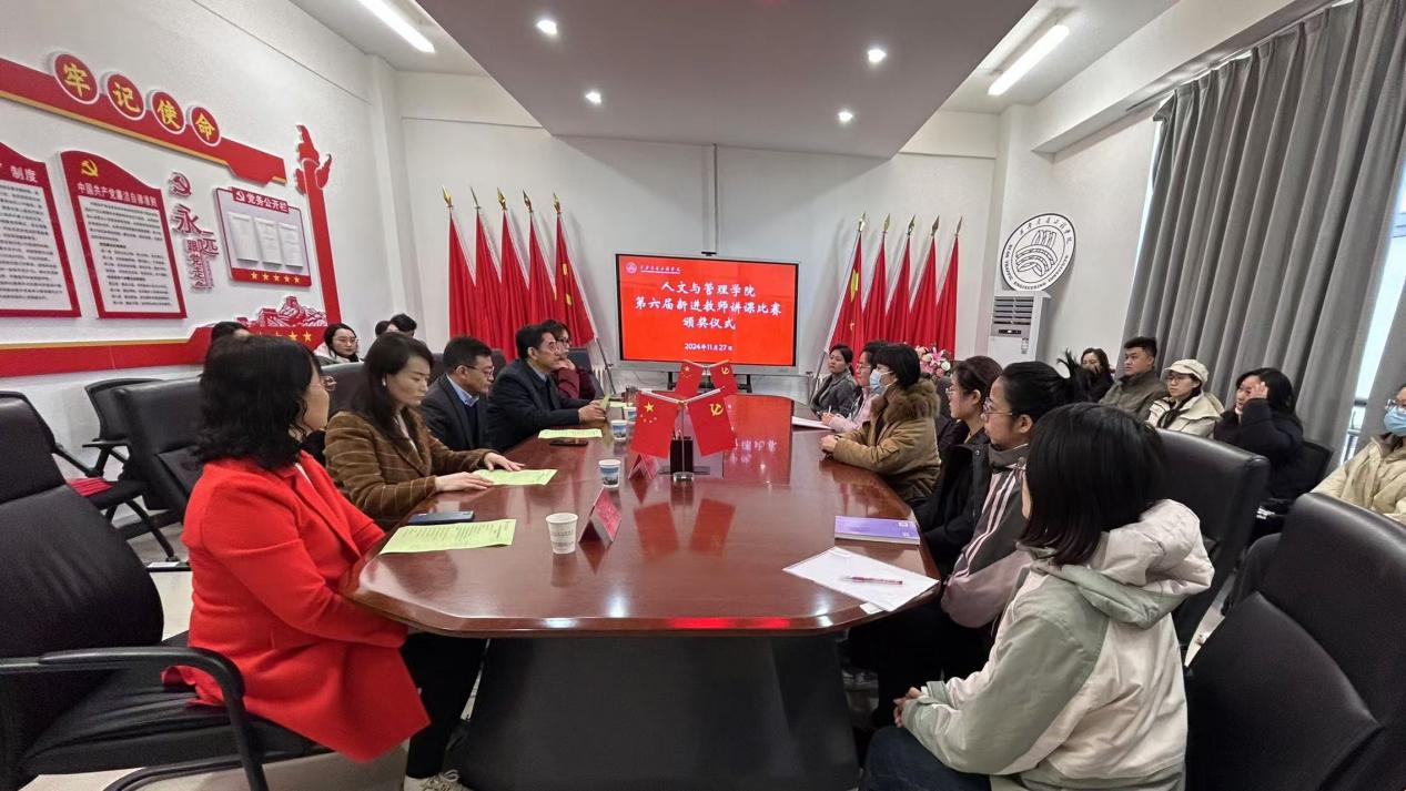 11月27日,人文与管理学院第六届新进教师讲课比赛颁奖仪式在1-212会议室举行。财务总监刘建华、人文与管理学院院长赵德利、党委书记兼副院长李沙沙、副院长白云、宁慧出席了颁奖仪式。