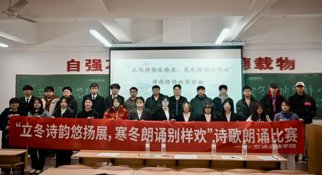 为弘扬中华优秀传统文化,提升学生文化素养,增强文化自信与民族自豪感,12月8日,交通运输学院举办“立冬诗韵悠扬展,寒冬朗诵别样欢”诗歌朗诵比赛在5-201教室顺利举行。