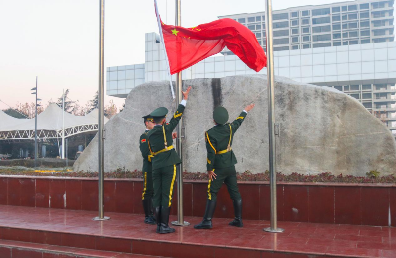 清晨,当第一缕阳光洒落,伴随着庄严的国歌声,全体师生衣着整齐,肃穆而立,五星红旗冉冉升起。
