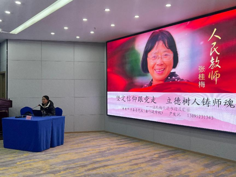 开班仪式结束后,中共丽江市华坪县委党校教师尹发沅作了“坚定信仰跟党走,立德树人铸师魂”---张桂梅先进事迹及启示专题讲座。她用朴实真挚的语言讲述了张桂梅精神形成的轨迹、价值意蕴、精神启示和如何学习践行张桂梅精神。她激励教师要坚持把“不忘初心、牢记使命”作为终身课题,不断锤炼忠诚干净担当的政治品格,坚守平凡岗位,踏实做好本职工作,面向未来,走好新时代的长征路,坚定理想信念、矢志拼搏奋斗,把增强“四个意识”、坚定“四个自信”、做到“两个维护”的政治信仰转化为推动思政课高质量跨越式发展的磅礴力量,为谱写好中国梦贡献力量。