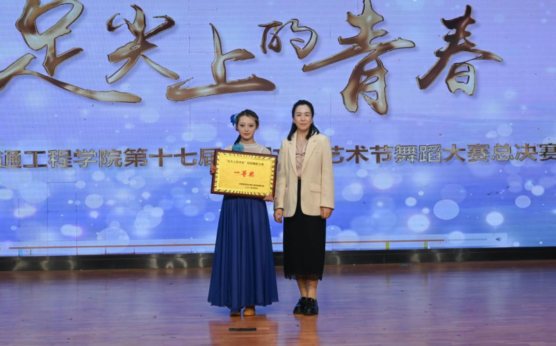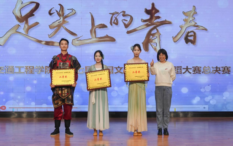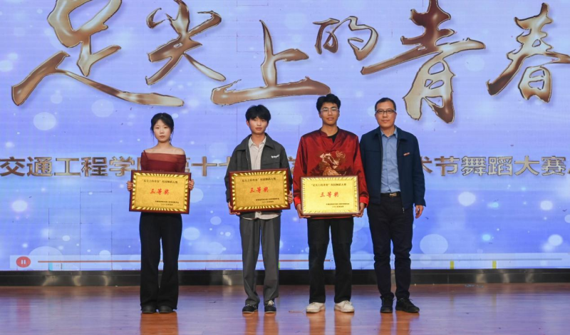 经评审团评分,人文与管理学院爵士舞《海边人》获得一等奖,现代技术学院古典舞《彩云追月》、土木与铁道工程学院中国舞《秦王点兵》、人文与管理学院古典舞《春雨涧行图》获得二等奖,中兴通信学院街舞《山河图》、机械与电气工程学院爵士舞《一千零一夜》、交通运输学院现代舞《This is me》获得三等奖,在场的领导为获奖集体颁发奖牌。