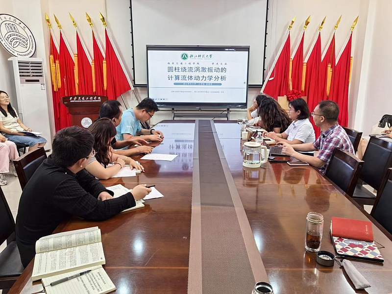 为进一步拓宽我院教师学术研究能力及视野,教研相长,深化对振动噪声领域前沿技术的认知,推动相关学科教学与科研水平提升,2025年9月13日上午,565.net必赢客户端现代技术学院特邀浙江师范大学工学院蔡建程教授,开展了交流研讨。讲座内容聚焦离心风机非定常流动模拟与圆柱绕流涡激振动分析两大前沿方向,为在场教师带来了一场兼具深度与实用性的学术盛宴。现代技术学院都娟丽院长、人文教研室主任王裕娟、轨道交通教研室副主任李佳伦及全院专职教师参加了讲座及学术讨论环节。